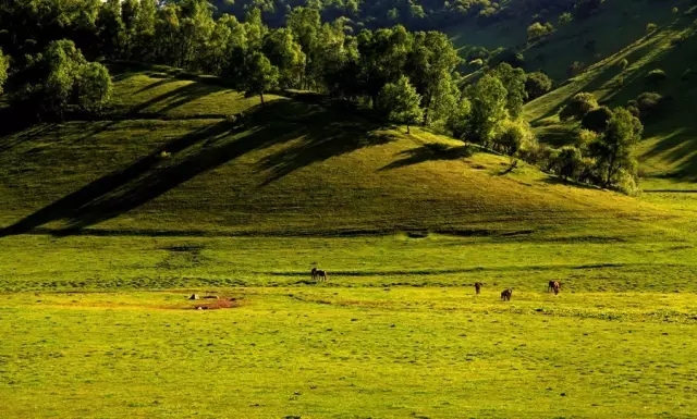 辽阔无边的大草原像是一块天工织就的绿色巨毯,步行其上,那种柔软而富于弹性的感觉非常美妙。穿行在关山草原,定会为那“千里草园铺翡翠”的景象而惊叹。每逢盛夏,草原上鸟语花香、空气清新,星星点点的蒙古包上升起缕缕炊烟,微风吹来,牧草飘动,处处“风吹草低见牛羊”。